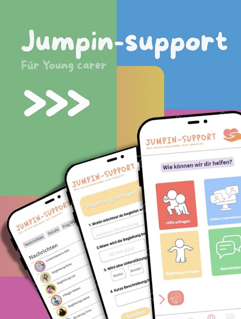 Eine App mit SOS-Button, Beratung und Unterstützung durch Pflegekräfte. Young Carers können Hilfe anfordern, beispielsweise wenn sie selbst eine Pause benötigen oder sich überfordert fühlen.
